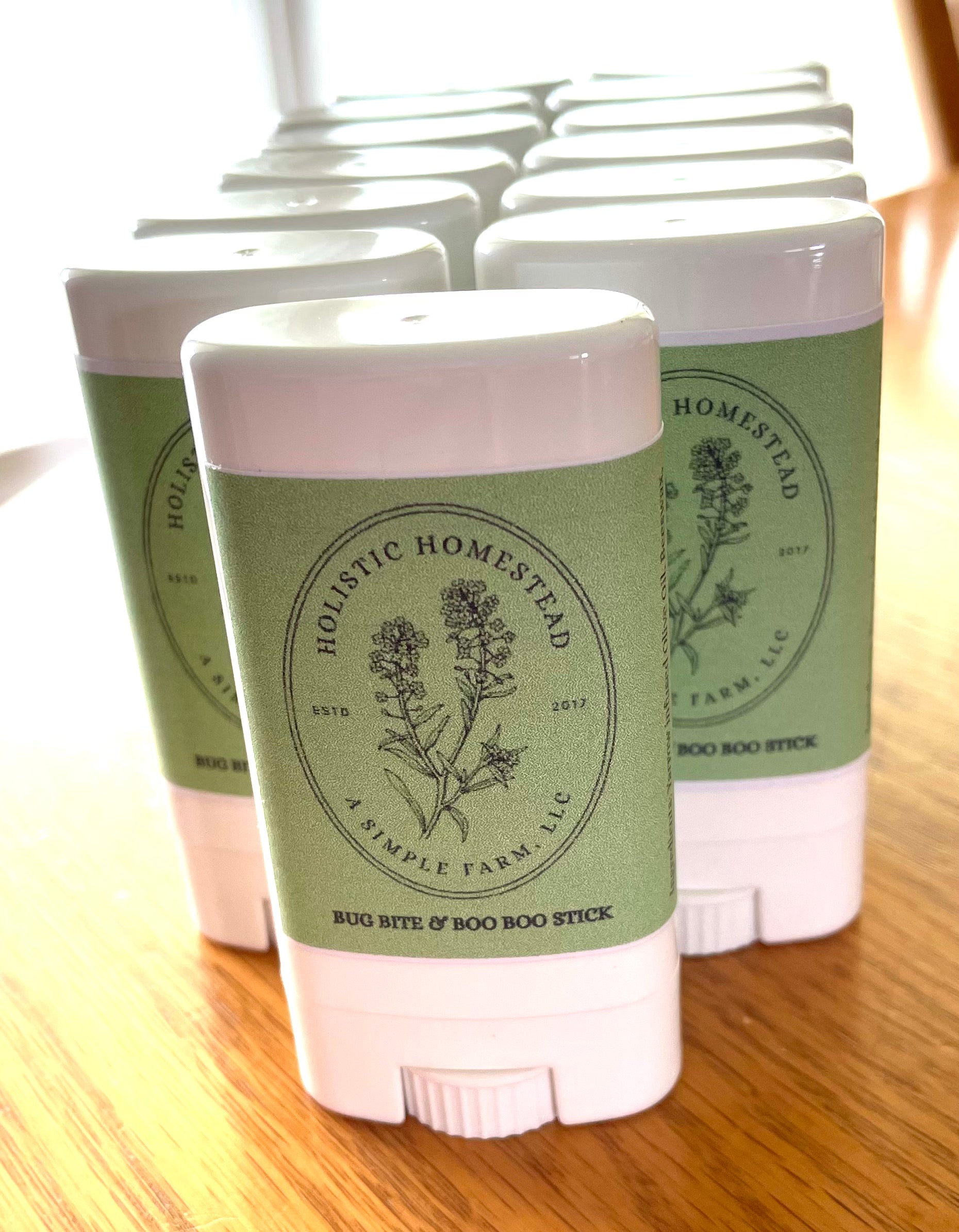 Made with yarrow infused olive oil, local beeswax, comfrey, plantain, calendula, tea tree and lavender.
