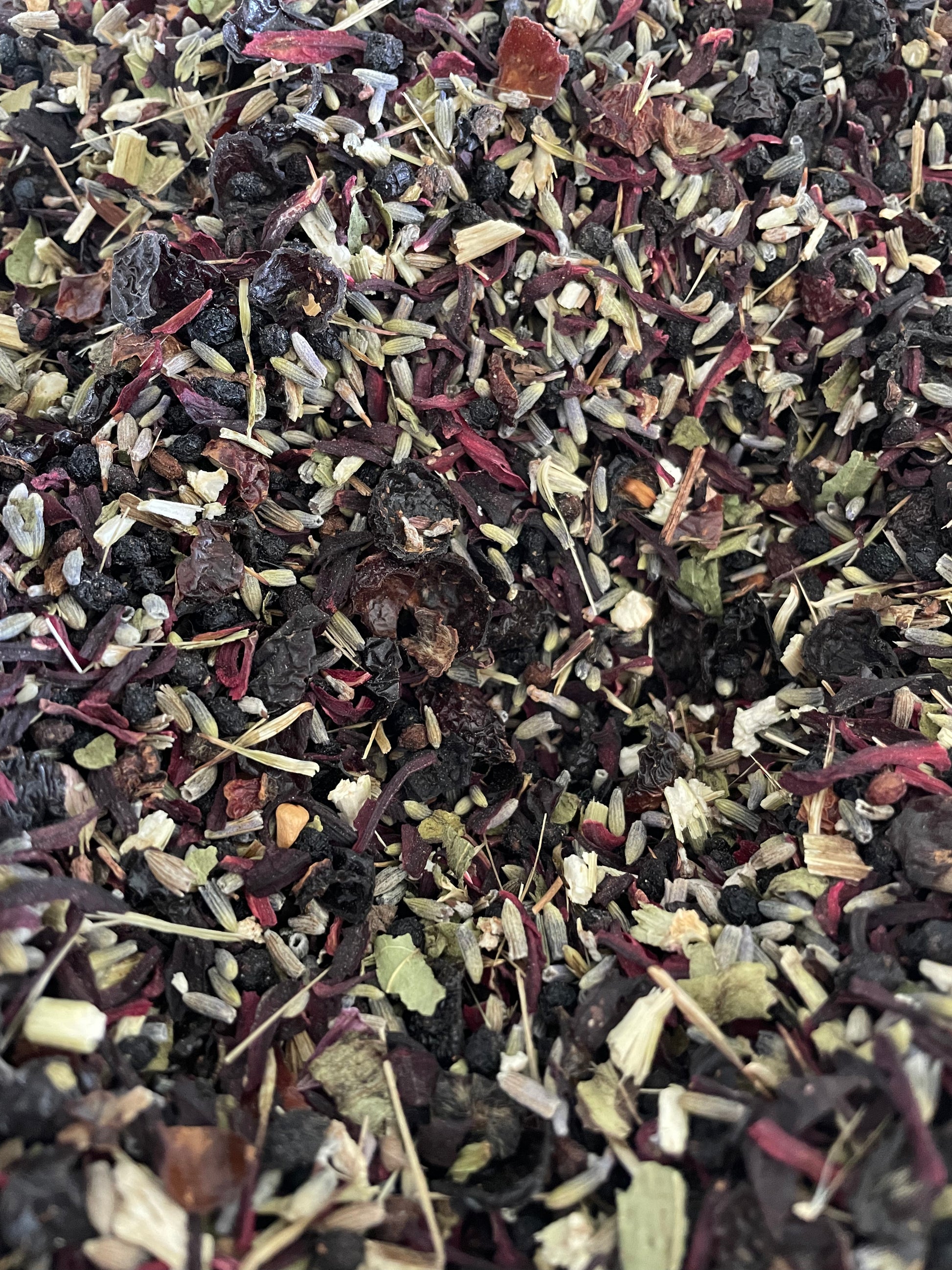 Loose leaf tea in a glass yogurt jar. 100% Organic ingredients! Elderberries, Echinacea, Lavender, Rose hips, Hibiscus all packing a punch to cure what ails ya!!