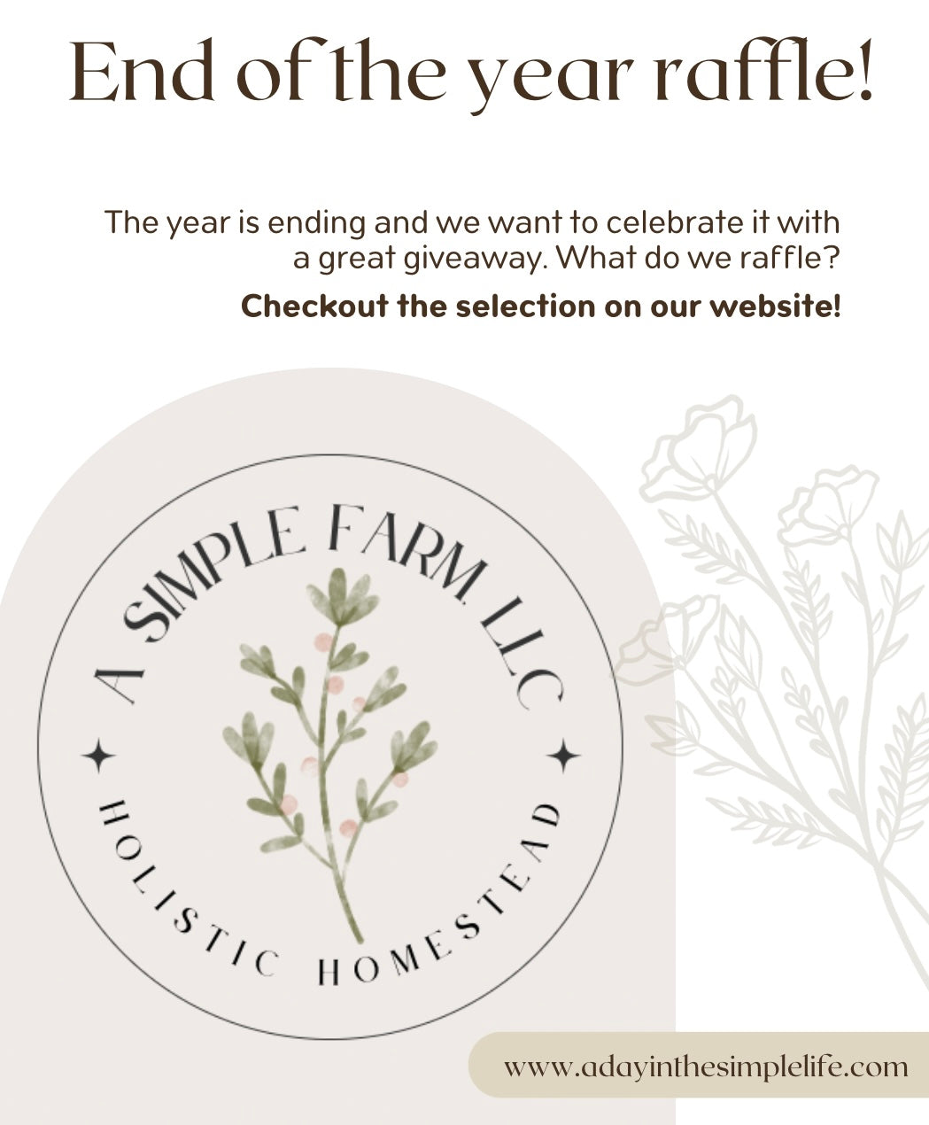 We want to celebrate a great year here on the farm! So let’s do a raffle!!! Tickets are reasonably priced at $1! Every online purchase earns you more entries (double per dollar spent)! This is a whole homesteaders dream package!
